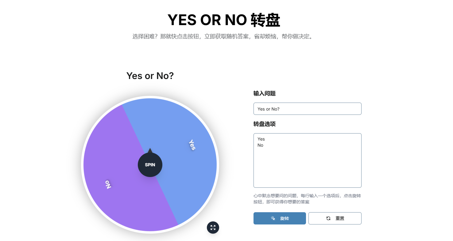 通过旋转转盘,自动生成“是”或“否”的结果,让选择变得趣味与轻松。